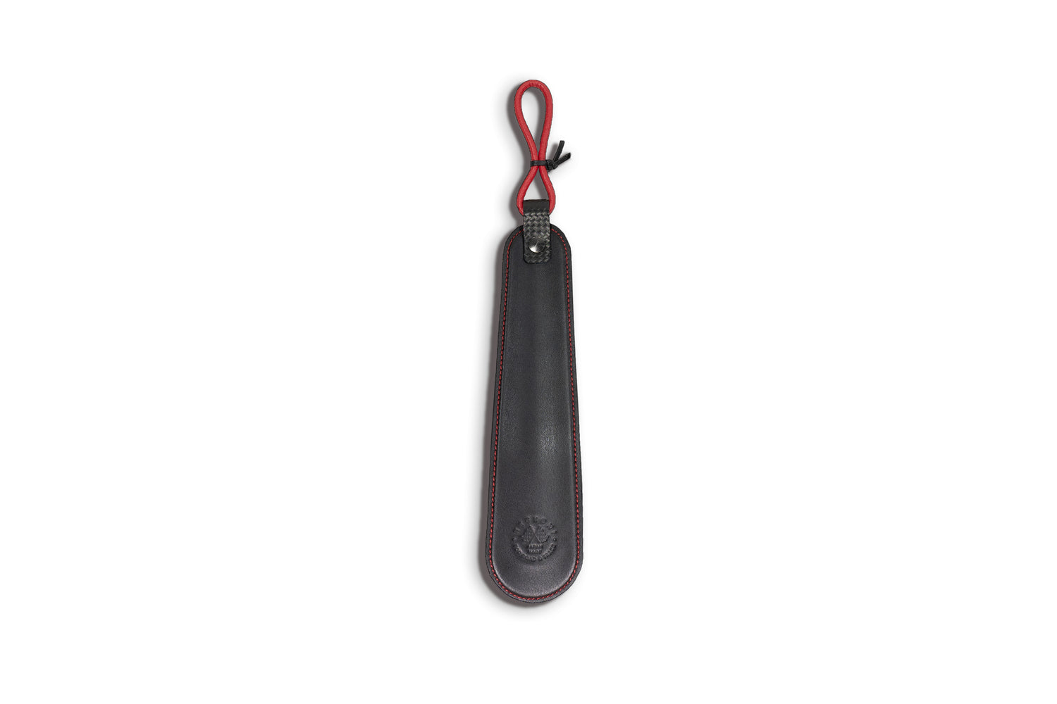 カーボンレザーのコンビネーションにビビッドなカラーステッチが効いたシューホーンです。レザーストラップが付いておりますので、フックに掛けて使用することができます。汎用性の高い中型サイズの長さですので、玄関用だけでなく、車内用としても使用することができます。こちらの商品は、ネグローニ ファクトリートーキョーのスタッフが全て手作りで作成しています。ネグローニが誇る上質な革のホームウェアをお楽しみください。