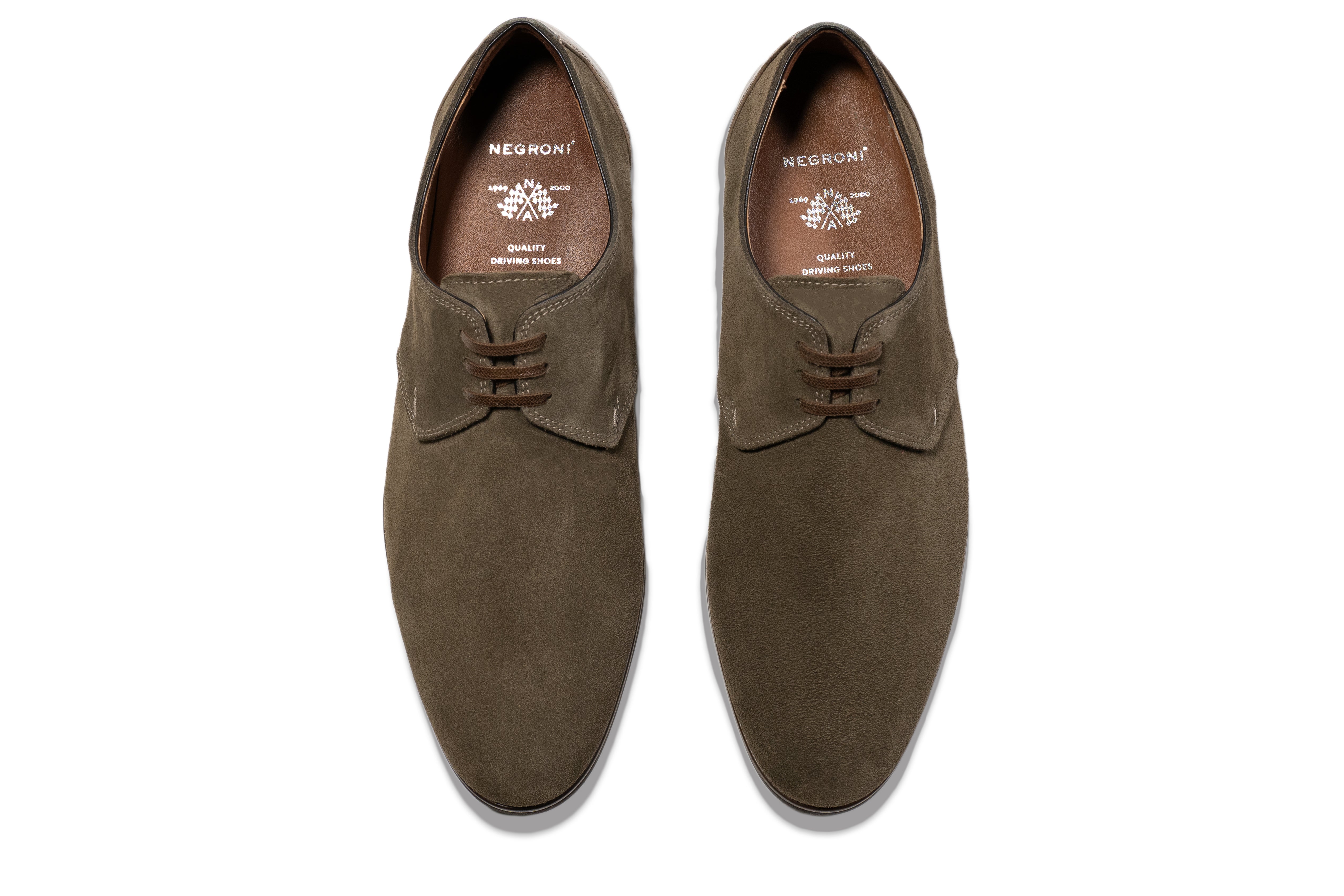 シグネチャーダービーは、1950年代後半にマイク・ホーソーンが着用していた英国製ダービーシューズをサンプリングし、ネグローニらしく再構築したモデルです。GRSラストを採用し、シャープな外観と立体的なホールド感を両立。ネグローニ独自の「ドレスソール仕立てのドライビングソール」を搭載し、レザーウェルトの温かみと軽量ラバーソールの機能性を融合しました。22mmのヒール高により、カジュアルなドライバーズスタイルからスーツやセットアップまで対応可能です。