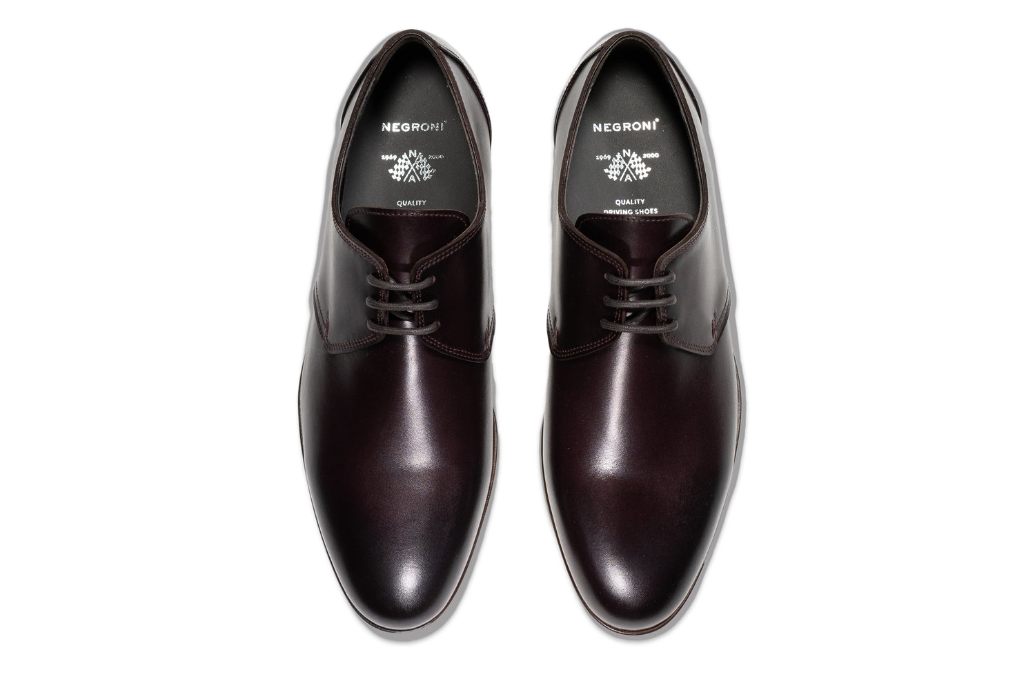 1950年代の英国レーシングシーンを想起させる3アイレットのプレーントゥを、現代的なカーフレザーで仕立てたドライビングダービー。